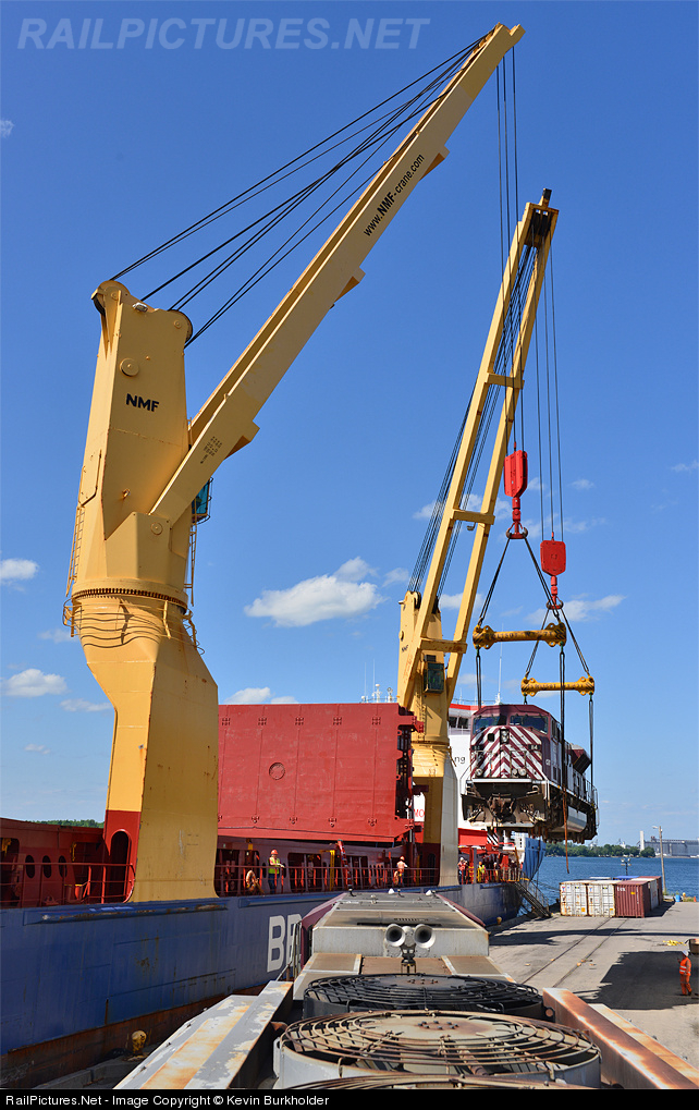 On Wednesday, July 18, Vermont Rail System, in cooperation with the The Ogdensburg Bridge & Port Authority teamed up to move a quintet of CIT-owned SD9043MACs to the BBC Delaware ship for export to northern Quebec. The units were loaded in the hull for shipment north. Full details and story at Eastern Railroad News Online Magazine in today's news edition: http://easternrailroadnews.com/daily-news/