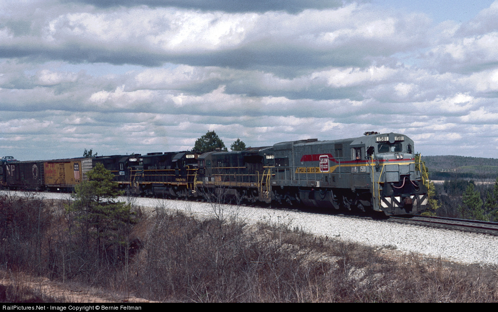 | Seaboard System U30C #1581, U33B #1736, GP38-2 #555 & GP40 #6730 lead southbound train #333 up Pine Mountain upon departing the yard. Seaboard System U30C was built August 1971 as Louisville & Nashville #1581 and later became CSX #7275 |