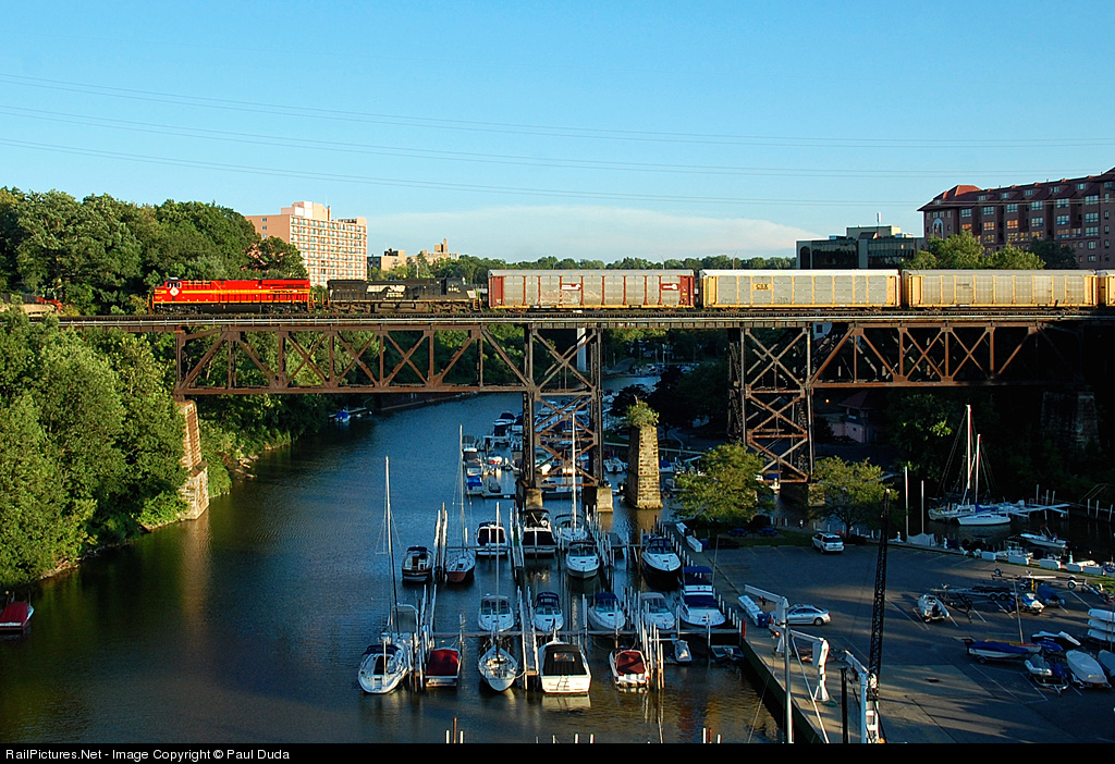 | The first heritage unit to come to this side of the old NKP leads 14T over the Rocky River on the Lakewood/Rocky River border. Given the sparse use of this line, catching a heritage unit here is quite the stroke of luck. |