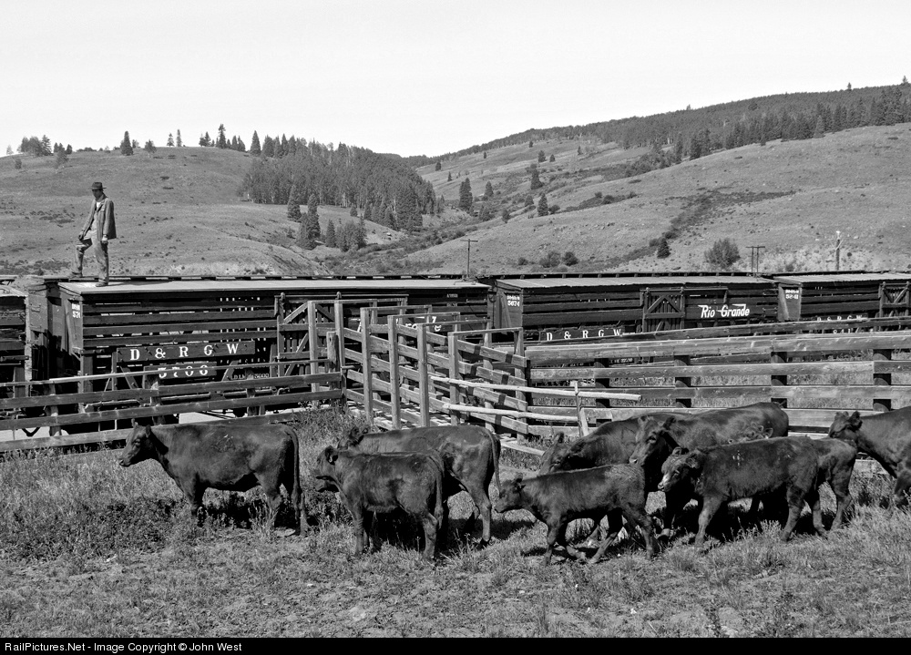 Loading cattle at Osier on the DRGW narrow gauge. Or at least that is what it looks like. Another Pete Lerro recreation. I added a bit of extra contrast to mimic what might have been the look of old B&W film and drug store processing.