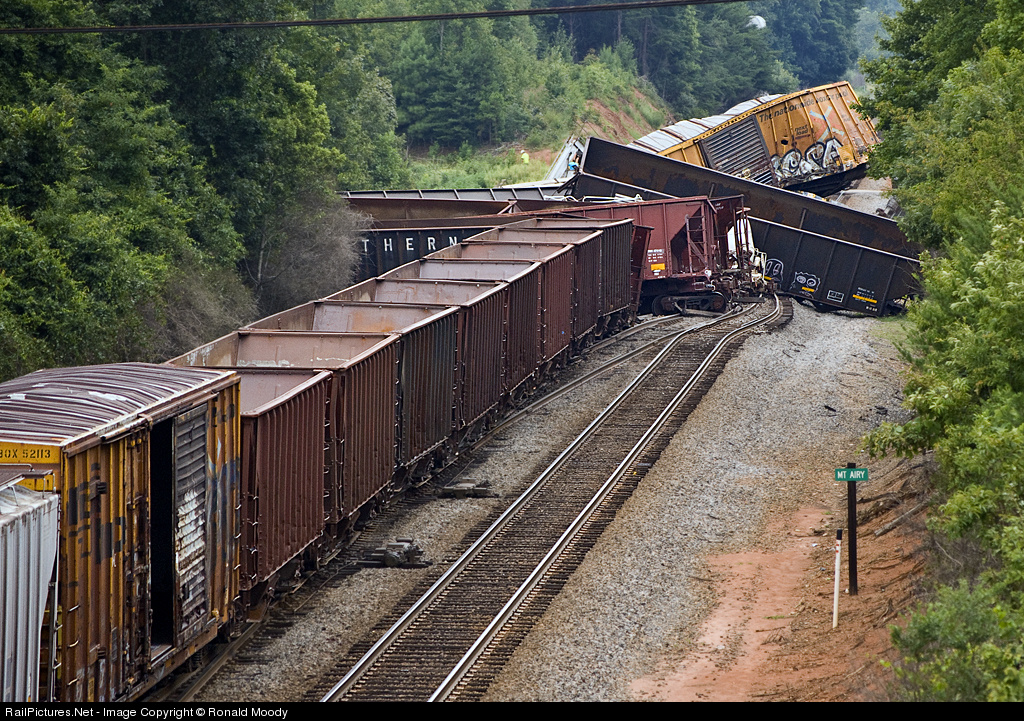 As far as I know, this is the first time a derailment has happened here in Mt. Airy. The cause has not been ascertained at the time of this photo upload. Do know that it was a Northbound NS 118 in track 2.