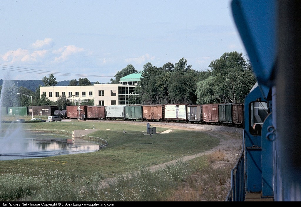View of the fountain in Mt Olive Industrial Park from Conrail's Dover local.