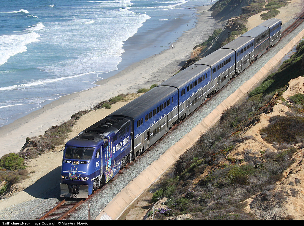 RailPictures.Net Photo: AMTK 457 Amtrak EMD F59PHI at Del Mar, California by MaryAnn Norvik