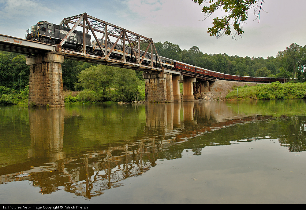 | NS's Blue Ribbon Special crosses the Mulberry Fork of the Black Warrior River near Cordova, AL on its way to Sheffield and eventually Memphis. While the F's couldn't lead, it was still a mighty fine train. |