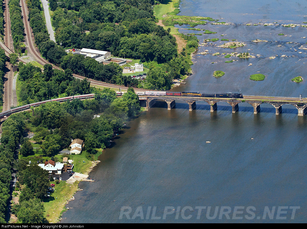 The Nickel Plate Road 765 and NS 8100 the NKP Heritage unit lead an NS employee excursion across the famed Rockville Bridge. Visible the lower left is the Bridgeview B&B.