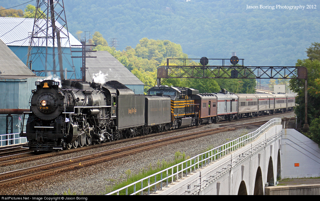| With people all over the west slope coming in to catch Steam on the Mainline for the first time in over 20 years, I stayed up by the PRR Stone bridge, to catch NKP 765 head westbound under the MP 275 PRR Signal bridge. |
