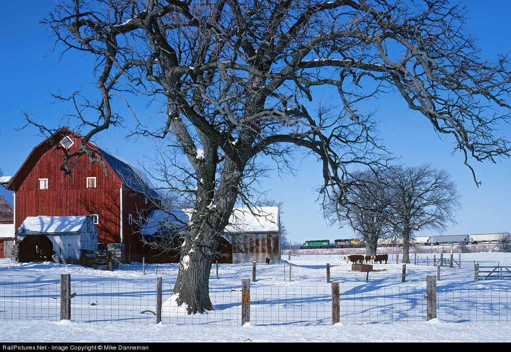 At 2:35 on the afternoon of February 13, 1994, a Burlington Northern westbound passes a farm just west of Flagg Center, Illinois. BN SD40-2 No. 8011 leads a trailing Santa Fe GP50, a sign of things to come . . . but we didn’t know it at the time.