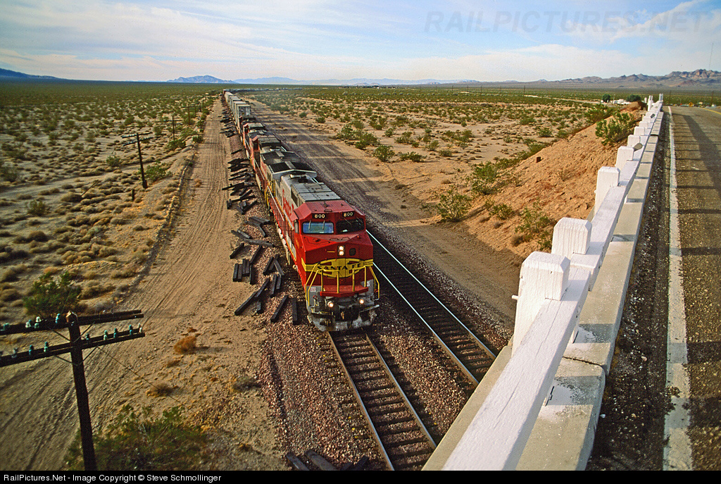 RailPictures.Net Photo: ATSF 800 Atchison, Topeka & Santa Fe (ATSF) GE C40-8W (Dash 8-40CW) at Essex, California by Steve Schmollinger