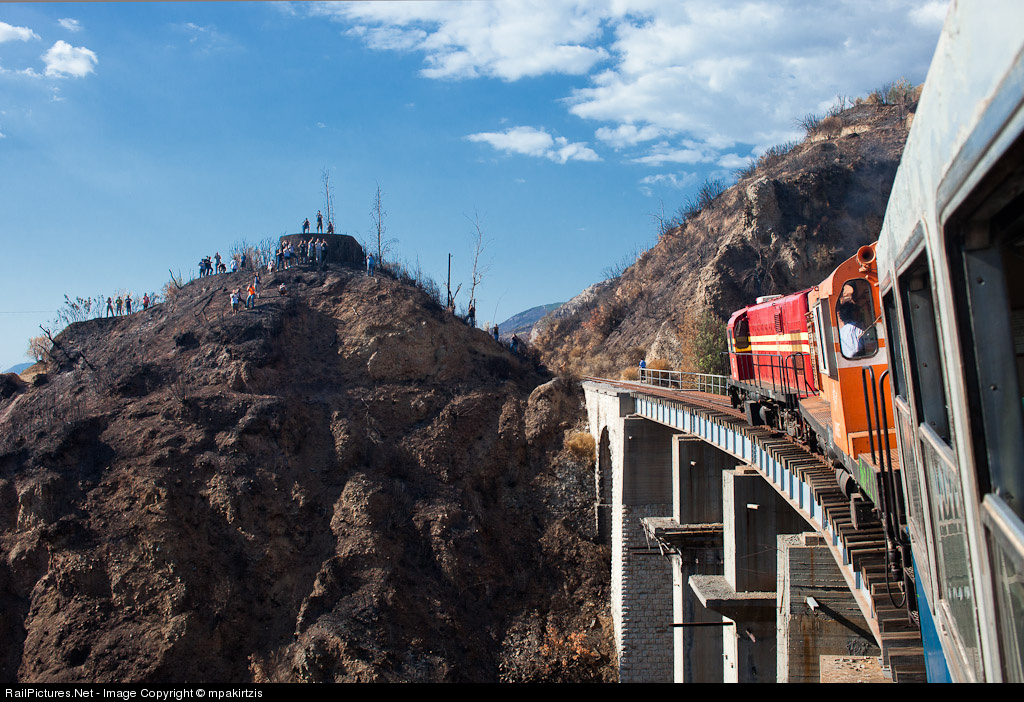 Taken at Anemodouri bridge on a special excursion rented train in the Peloponnisian closed meter gauge line (the place unfortunately was burnt by fire a few days before). Our goal (sfs: Greek railways fan club) is to achieve the reopening of the line for touristic and nostalgic trains in cooperation with TRAINOSE . The line was renovated recently, the feeling is fantastic. The places are perfect and the people know what greek philoxenia is. Many European railfans were informed about this testing first excursion but the seats were unfortunately only 50, they know the history of the line, I hope they enjoy the line in the near future listening to the ALCO song.