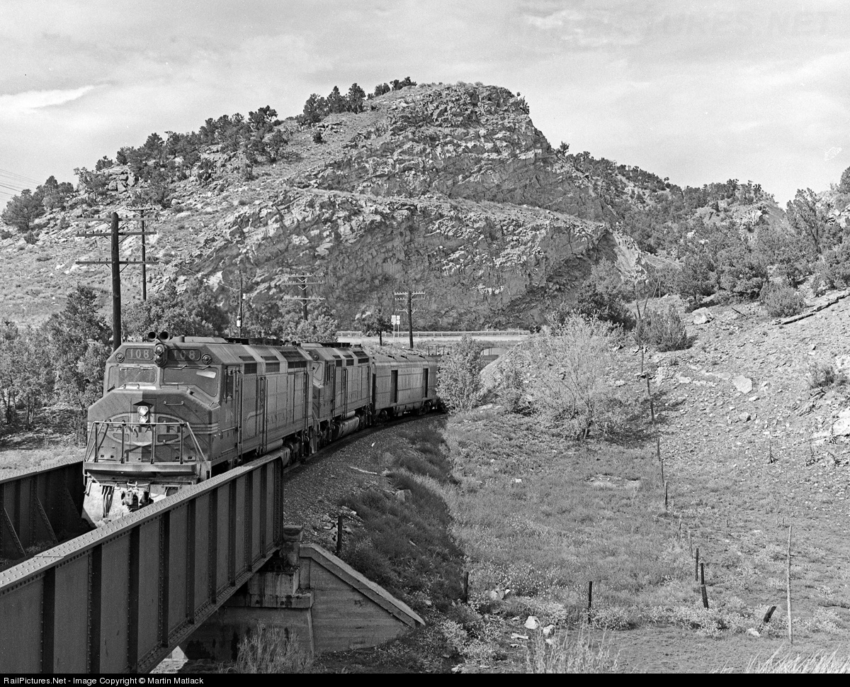 ATSF FP45u #108 and sister #105 lead the Westbound El Capitan, running as a second section of train #17, The Super Chief, out of Apache Canyon towards Lamy.