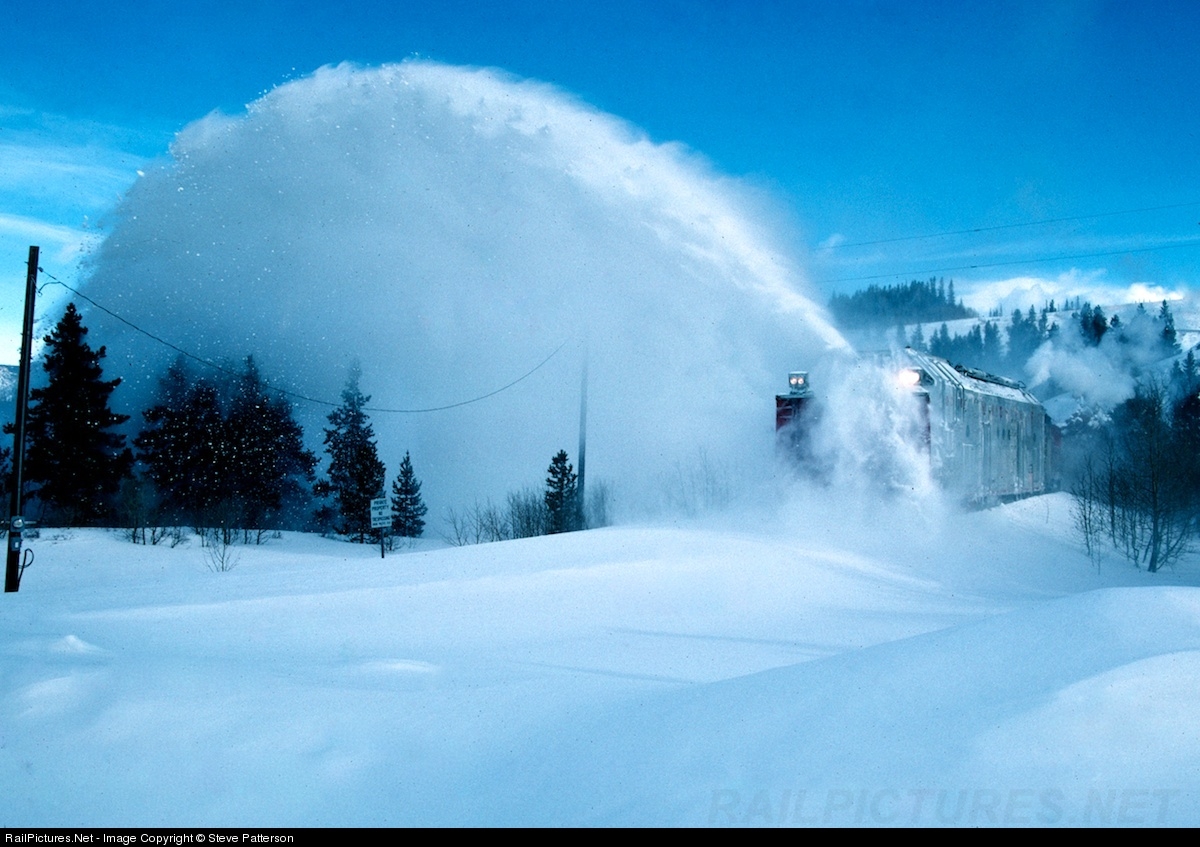 Helping a neighbor, Union Pacific Rotary snow plow 900080 is on UPs former Coalmont Branch, now the Wyoming Colorado RR, clearing snow at Albany, Wyo.