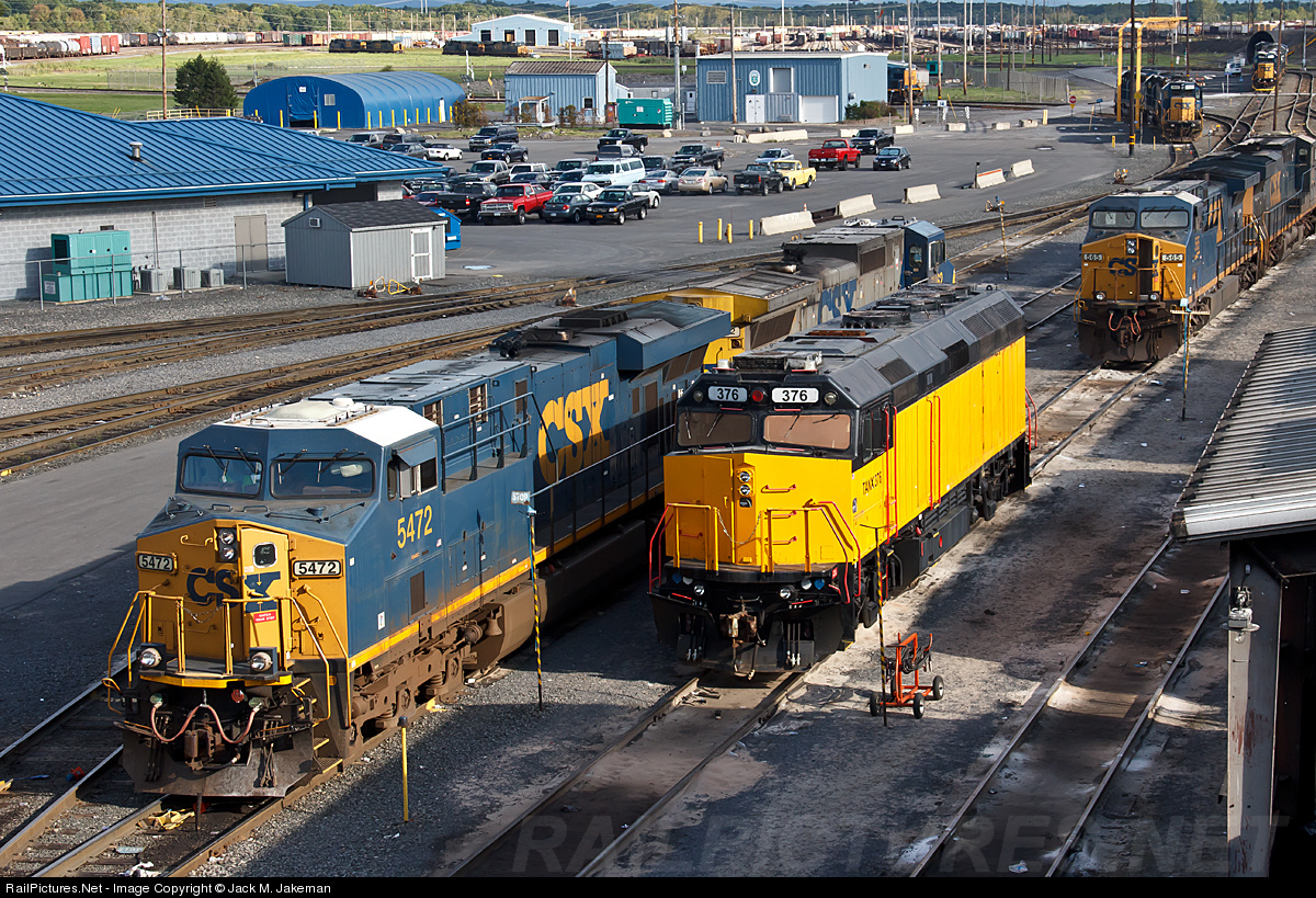 | Upon initial arrival to Selkirk today, there did not appear to be to much of anything intersting. However, a glimpse of a bright yellow locomotive caught my sight amidst a sea of CSX engines. Upon closer inspection I would find this F40PH sitting outside the locomotive shops while a pair of CSX engines head toward the shop. This just goes to show, you never know what might pop up here. |