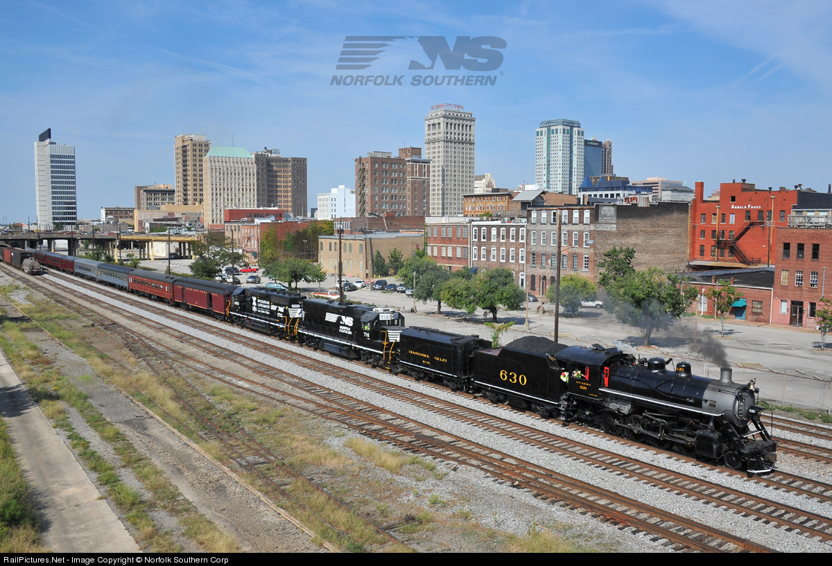 | Southern 630 steams through downtown Birmingham on its first run with an employee excursion. Photo by Casey Thomason. For more information, visit www.nscorp.com