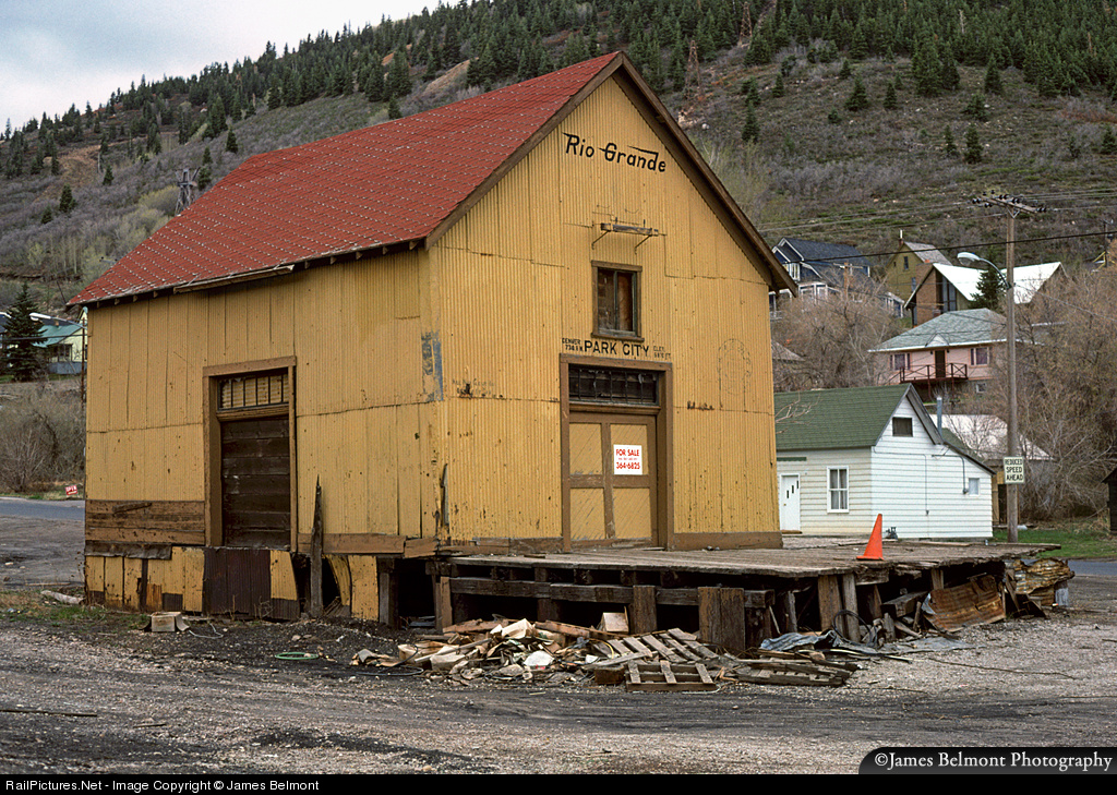 While looking for historic mining artifacts in Park City, we discovered the old D&RGW freight depot along Park Avenue. The Rio Grande removed trackage into Park City in 1948, but this structure sat basically untouched for nearly 30 years. Lettering along the face above the door reads 'DENVER 774.8 M' and 'ELEV 6970 FT'. A faded Royal Gorge Route logo can be discerned along the upper righthand side of the door. The structure survives today, converted into a business in what is now a highly gentrified and touristy Park City.