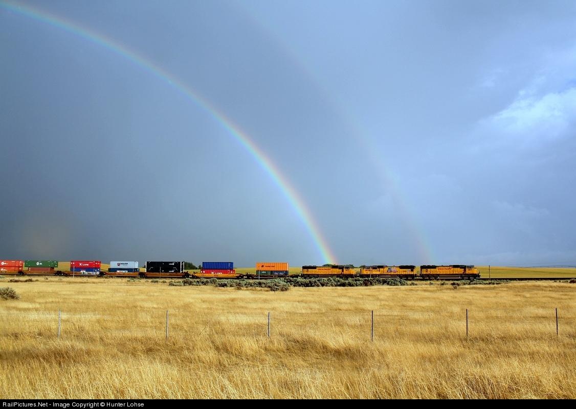 POT OF GOLD AT THE END OF THE RAINBOW!!!! UP 4107 leads a Seattle bound stack train after a heavy thunderstorm