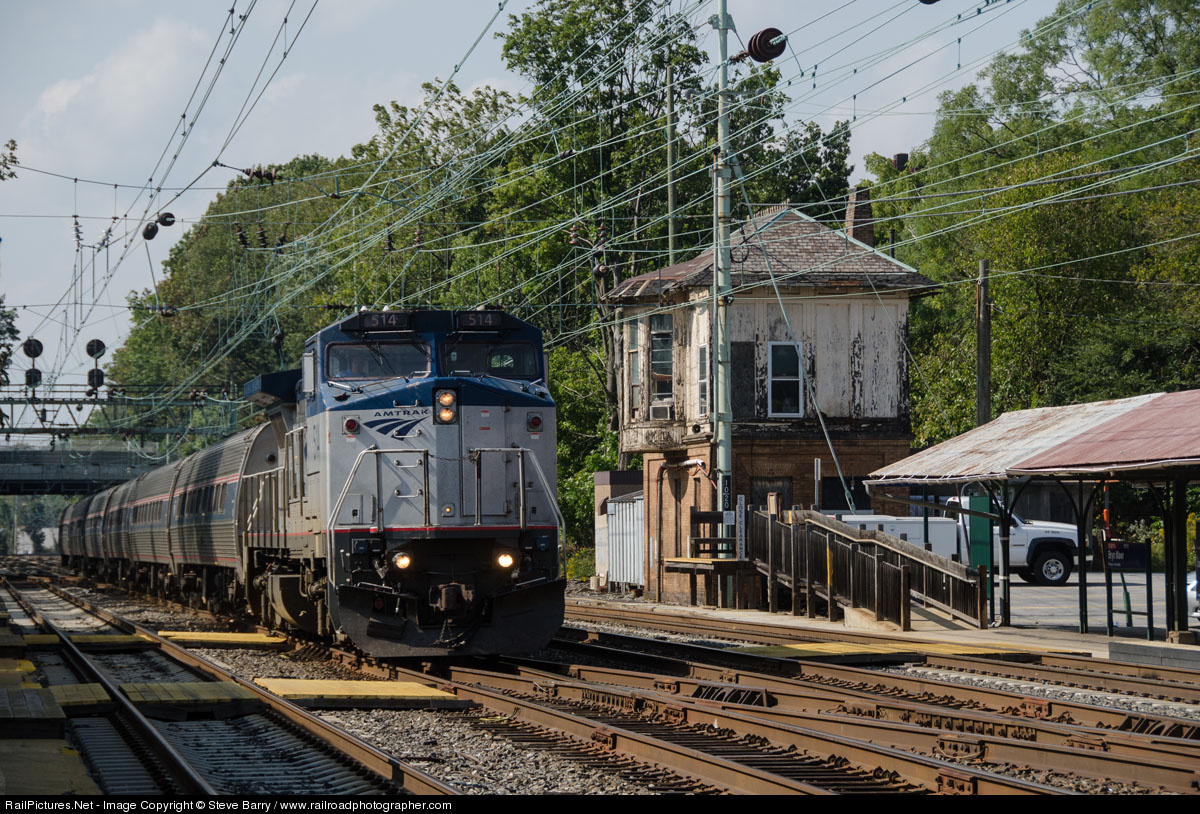 | Amtrak's Pennsylvanian rolls past the closed tower at Bryn Mawr with the City of Brotherly Love just a few minutes ahead. The Pennsylvanian is the last remnant of passenger operations on the Pennsylvania Railroad's Broad Way, a route that once boasted the Broadway Limited. |