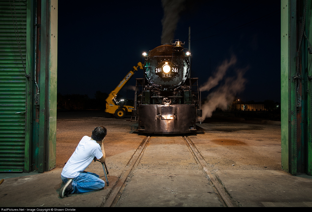 Josh D grabs a shot of the 261 while Steve Sandberg loads the tender with coal.