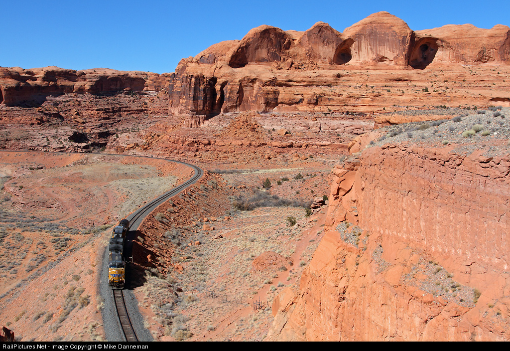On March 4, 2012, UP’s Potash Local heads back to the main line at Brendel, Utah, with a one lowly tank car picked up earlier at Brendel. The train is about to enter the big cut leading to Bootlegger Canyon. It may be a little train, but the red rock scenery sure is big!