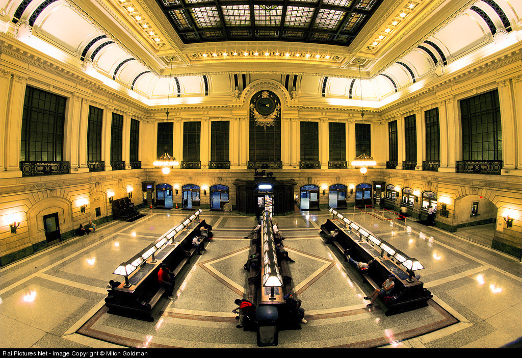 Well past rush hour, late evening patrons of both Metro-North and NJT wait in the lobby of Hoboken Terminal for their respective departures. Special thanks to Michael William Sullivan for inspiration with his daytime perspective and for forcing my hand in regards to the purchase of a new 8 mm fish eye lens.