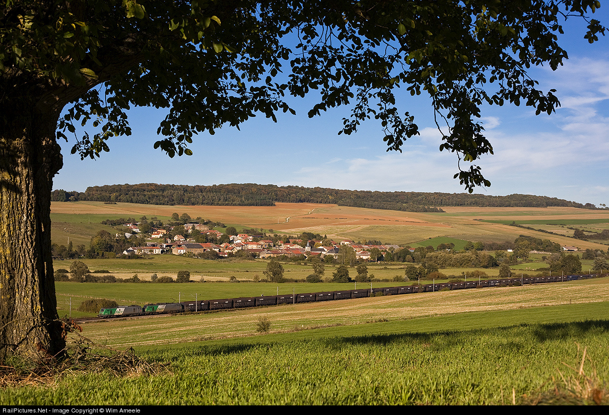 | Empty coal train going to Dunkerque via the North-East Corridor. In the background the small village of Verneuil-Grand. |