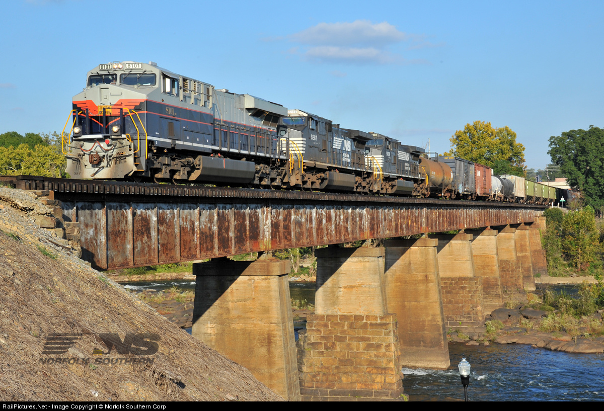The Central of Georgia heritage unit leads train 137 across the Chattahoochee River, away from Columbus, GA, and into Alabama. This is the original Central of Georgia mainline to Birmingham. Photo by Casey Thomason. For more information, visit www.nscorp.com
