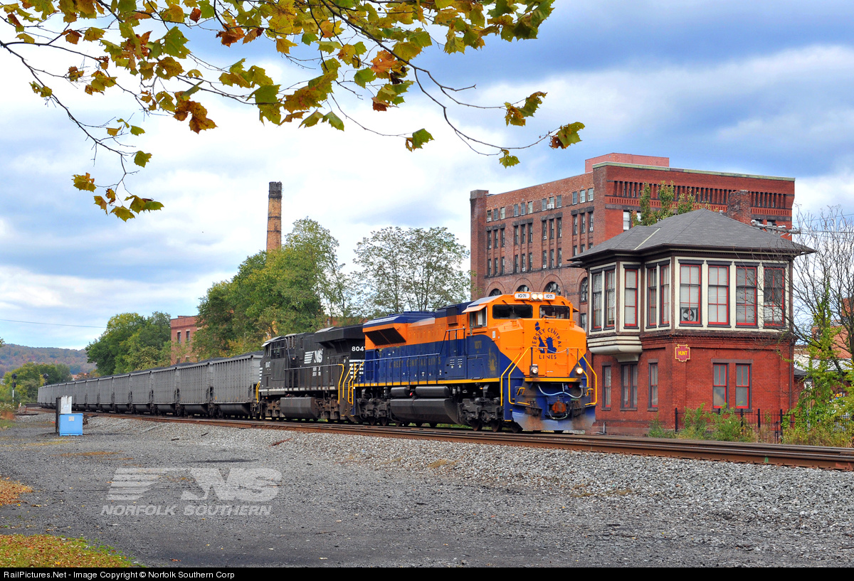 | "Lady Liberty" leads a coal train past Hunt Tower enroute to Baltimore with Mon Valley coal loads. Photo by Casey Thomason. For more information, visit www.nscorp.com |