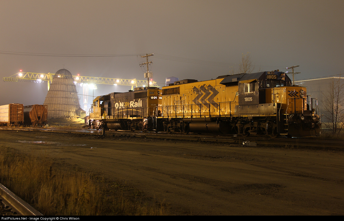 ONT 1805 + ONT 1801 idle away beside Tembec's Hearst sawmill