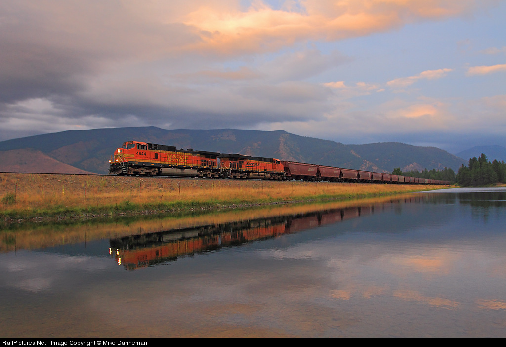 It’s after sunset on September 15, 2011, as a BNSF grain train passes through Trout Creek, Montana, under a sky full of pastel colors. A GE C44-9W/ES44DC combo powers the train up front, while another Dash 9 follows up as a rear DPU. Soon, darkness will fall upon Frog Pond, and our sensory perception will slowly shift from eyes to ears. All we will hear is an occasional fish jump or coyote yelp. And if we’re lucky too, we’ll hear more air horns whistling westbound through Trout Creek.