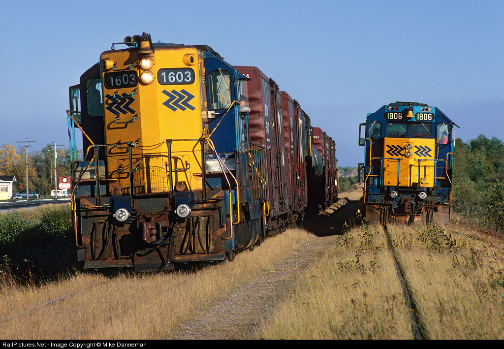 In 1993, the Ontario Northland expanded its operations when it took over a portion of the Canadian National’s former Canadian Northern main line from Cochrane west to Hearst and Calstock, Ontario. In this view a ONR work extra has cleared in weed-encrusted Opasatika siding and a westbound freight, led by GP9 No. 1603, is pulling on past on the afternoon of September 21, 1993. It looks like both the main line AND siding at Opasatika could use a bit of cross-leveling (and probably new rail, new ties, weed spraying, ballast, etc.).