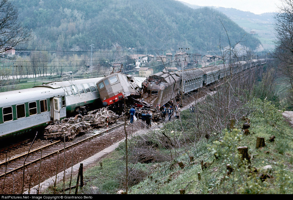 A Murazze Vado (Tuscany), due to the landslide of a hill, the locomotive Espresso 572 bis, Bari to Trieste, from the south, ending derails across the tracks of the North-South. In a few moments the tragedy: out of a tunnel, piercing the rain at seventy miles per hour, the rapid "The Arrow of Laguna", with four hundred people on board, he meets another train on his line lying on the tracks. The impact is devastating. The remains of the engines disintegrated and the first coach of the fast flying in the air after a saltodi 20 meters. The carriages behind fall along the slope. the train Bari to Trieste it remains on track, still, with its load of passengers, in shock, but amazingly unharmed. Only the engine is torn apart by the collision. The four drivers die on the spot. The budget is a tragedy: 48 dead and 76 wounded. google translate sorry.