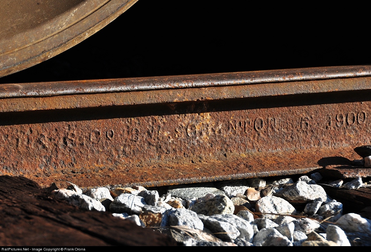 Rolled way back in 1900 by the Lackawanna Iron & Steel Company in Scranton, Pennsylvania, this piece of 80 lb rail can certainly still hold its own as it has no trouble supporting the weight of a 368,000 lb SD40-2 built 74 years after it was rolled.
