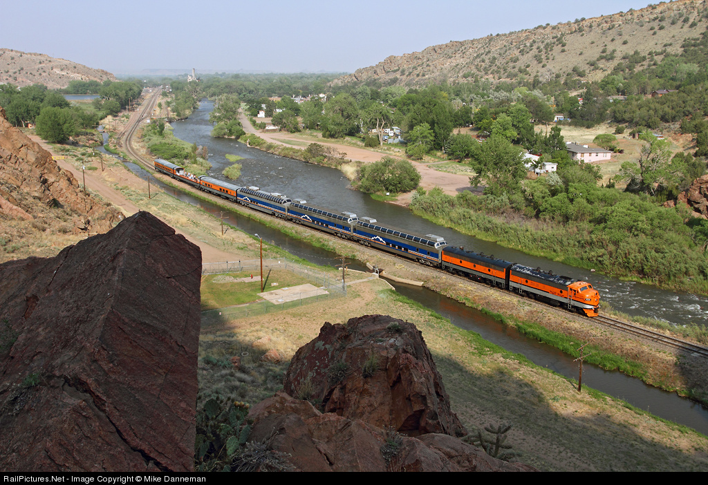 A Canon City and Royal Gorge passenger train is just west of Canon City, Colorado, on the afternoon of June 2, 2011. CC&RG F7 No. 403 is a former Chicago and North Western locomotive.