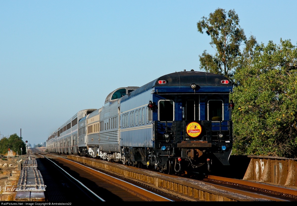 A classy ending. Four of LARail's private cars bring up the rear of Amtrak's Coast Starlight train as it flies across West Bridge in Davis, California. These cars (from front to back) are the Salibury Beach, Pacific Sands, Silver Splendor, and Tioga Pass. Each car has it's unique purpose, but together they deliver an excellent journey and way to see America.