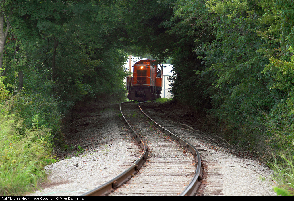 Southern Indiana Railroad (SIND) S-2m No. 103 leaves Watson and enters a “tree tunnel” on the return trip to Sellersburg, Indiana, on August 10, 2012. SIND is a small railroad servicing a cement plant that operates from Sellersburg to the interchange with CSX at Watson, Indiana. They operate with two rebuilt Alco switches, now fitted with 600-horsepower Cummins diesel engines, on former interuban right-of-way, which really shows in this view.