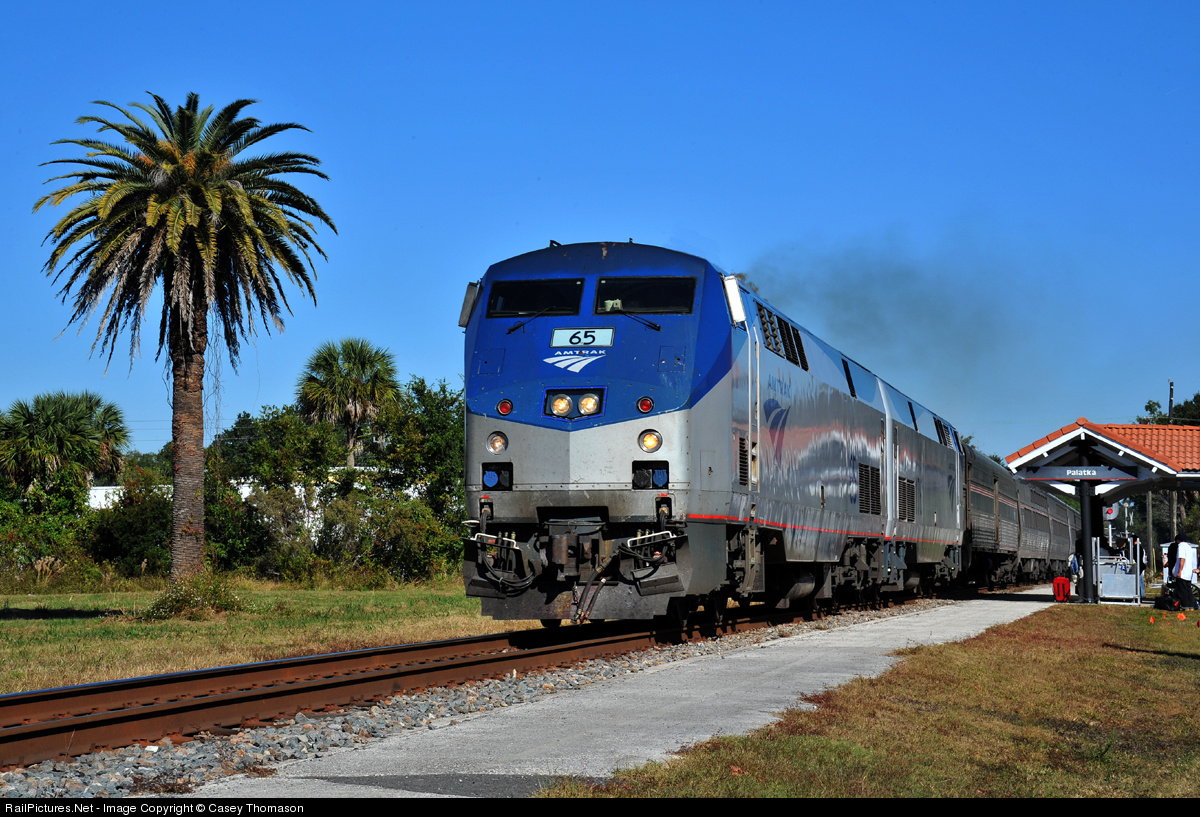 | Amtrak 65 brings the Silver Meteor to a stop at the Palatka, FL, station on "Black Friday". |