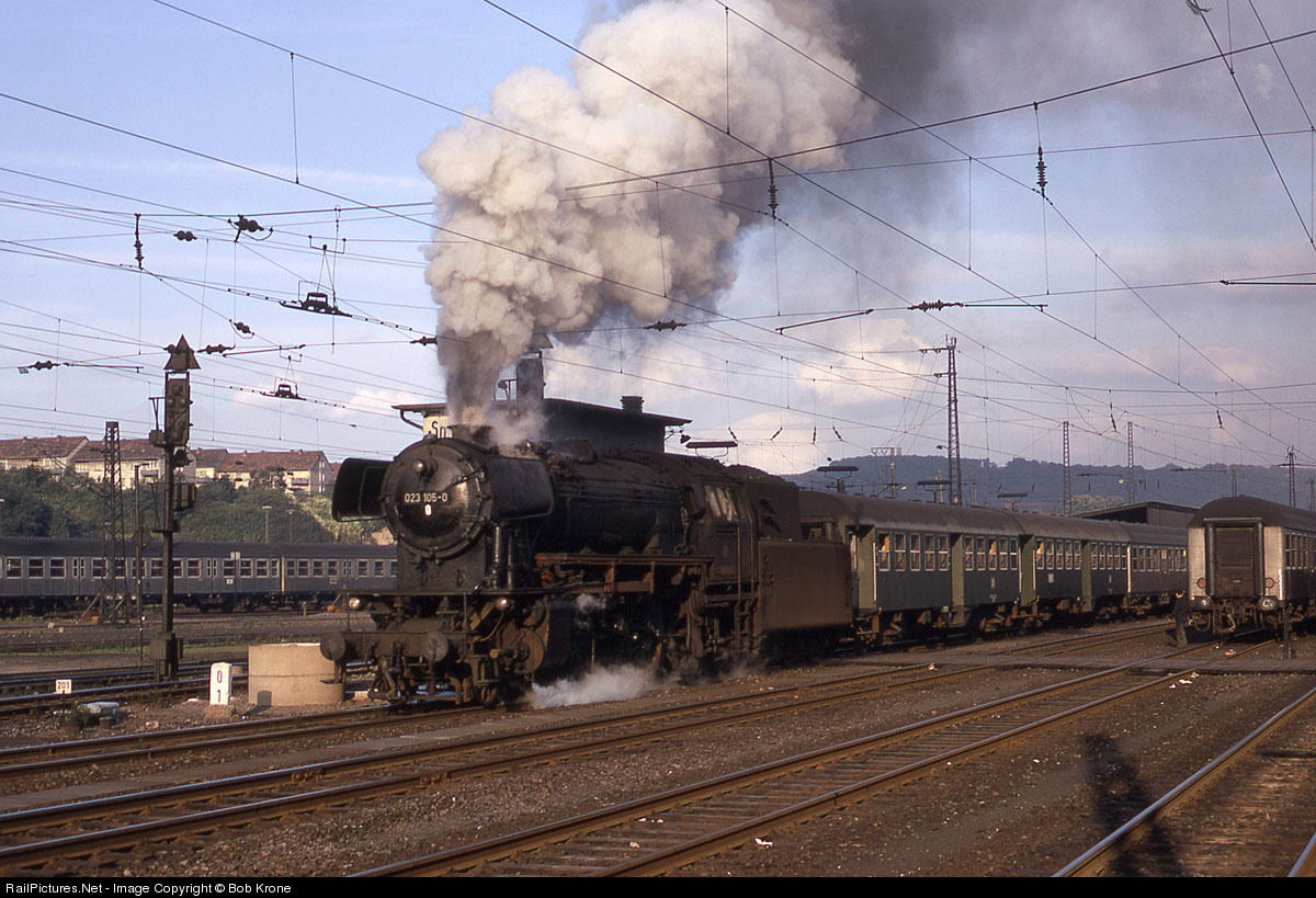 This 23 class 2-6-2 was the last steam locomotive built for Deutsche Bundesbahn in 1959. It was damaged in the museum collection fire at Nurnberg a few years ago. It is leaving Saarbrucken on a late afternoon westbound passenger train in this picture.