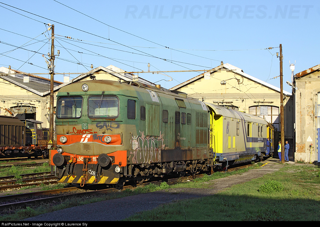 D.345 1107 stabled outside the shed at Livorno with the area rescue train.