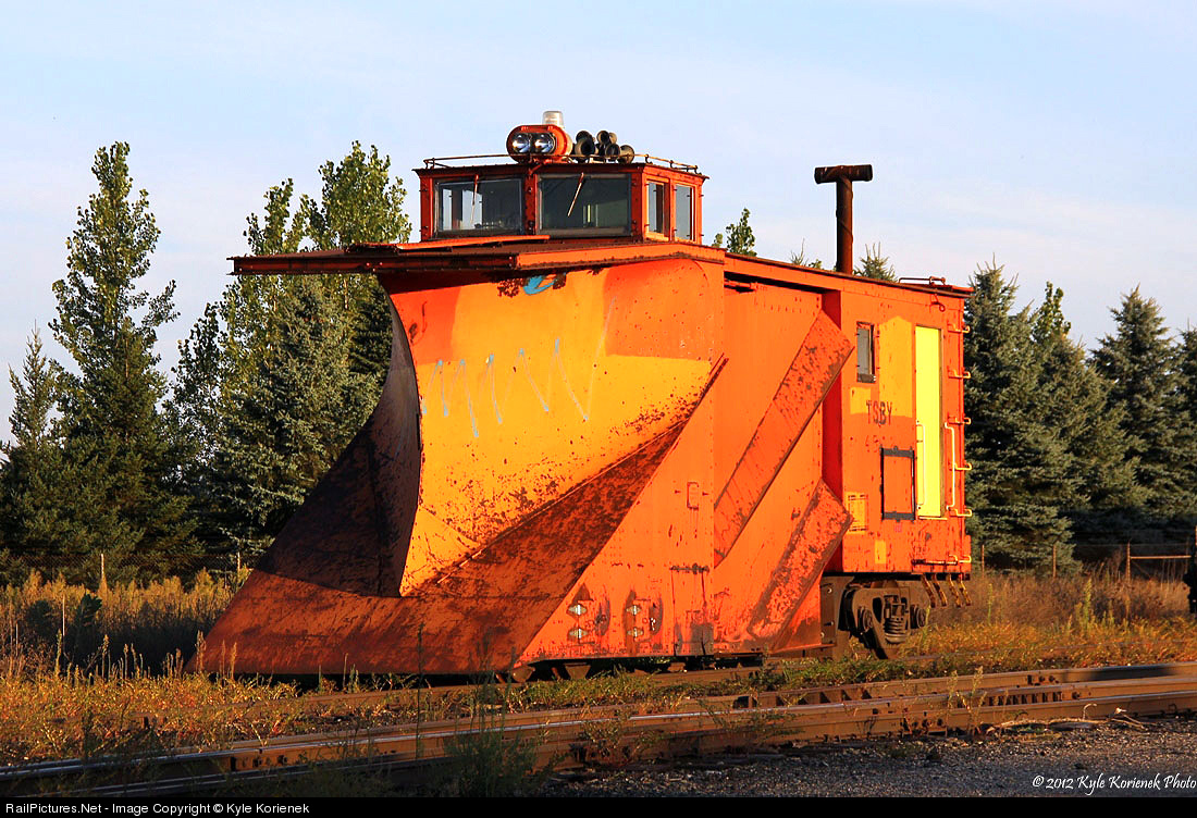 | Though it may be beat up from many years of dedicated service, Great Lakes Central plow 4502 rests just outside the Cadillac engine terminal before the morning call of the CNTN. Still sporting TSBY reporting marks, the plow is used frequently in the wintertime when there is significant snowfall to keep the lines to Yuma and Traverse City clear to avoid issues related to blown or heavy snow. With winter fast approaching, the plow will put in another winter of service and then take another Michigan summer off. |