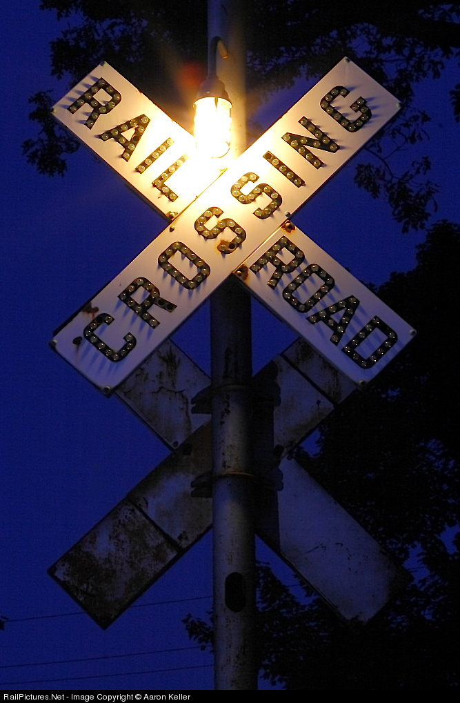 On a back road in New Hampshire, an old crossing sign (with most of its marble reflectors intact) stands sentinel at twilight — just in case a lonely, midnight motorist happens across a lonely, midnight train.
