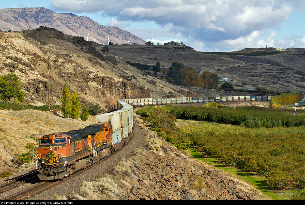 I plead guilty! A pair of BNSF GE's lead an empty garbage train past the scenery at Maryhill,WA on October 25, 2012. Rumor has it that Railpictures.net contributor Indecline is the "Mayor" of this general area, and anyone caught "poaching" will be charged a hefty fine. So, fine away Indecline!