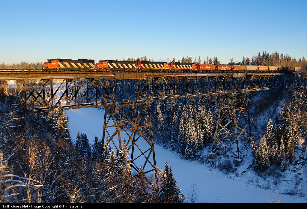 A quartet of CN SD60Fs lead train M347 across the Pembina River between Entwistle and Evansburg, Alberta. It's been a long time since a consist like this graced the Edson Sub with its presence, especially on a revenue train.