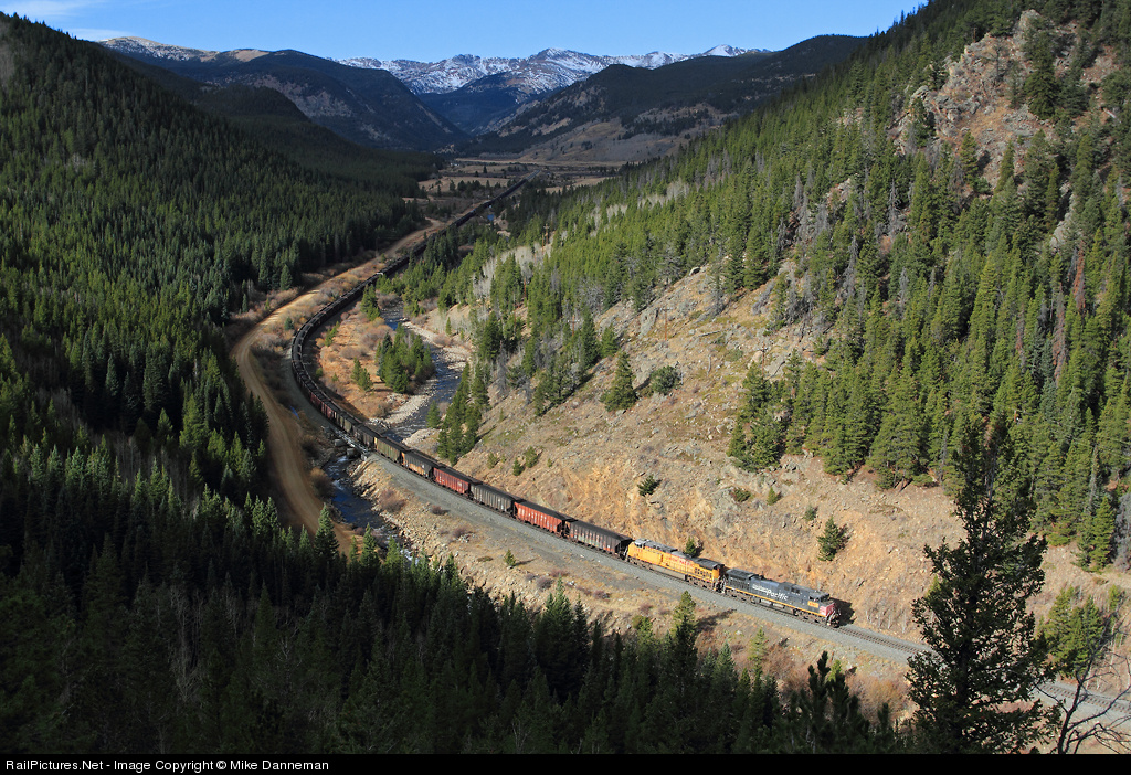 Eastbound leaving Tolland After meeting Amtrak No. 5 at Tolland, Colorado, an eastbound Union Pacific coal train sweeps through the big curve and over Boulder Creek on the morning of October 22, 2012. Former Southern Pacific AC4400CW No. 6361 leads the train through a fortunate “sucker hole.” Definition of sucker hole: “Sun stays out, or momentarily comes out, illuminating only part of a scene in the correct location for a well-lit railroad photo. Usually has a dark background. Usually doesn’t happen.”