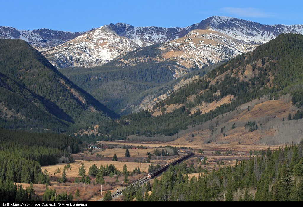 In at Tolland On October 22, 2012, an eastbound coal train is slowing to a stop at the east end of Tolland siding on Union Pacific’s Moffat Tunnel Subdivision. A former SP AC4400CW is on the point, and the three mid-train DPUs can be seen in the curve, as the train will wait here for Amtrak No. 5. The beautiful Continental Divide of the Rocky Mountains, which includes James Peak that the 6.21-mile Moffat Tunnel burrows beneath, dominates the background.