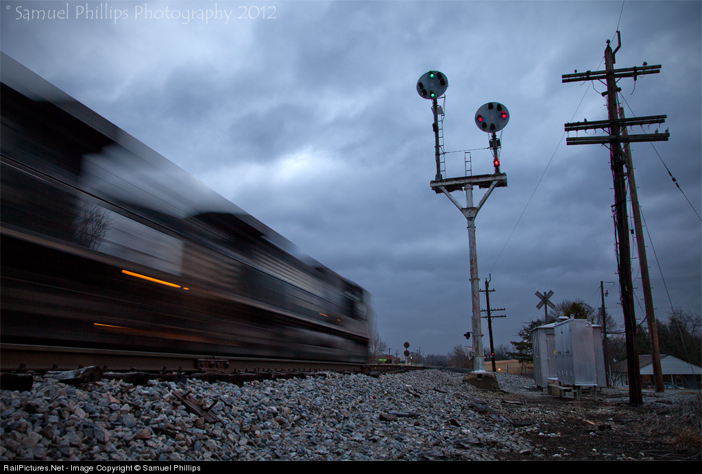 | Darkness falls, as NS 38Q streaks into the old Norfolk and Western CPL's at Stones Mill situated in the quaint community of Wytheville, VA as the train rushes east with a heavy manifest train in tow. |