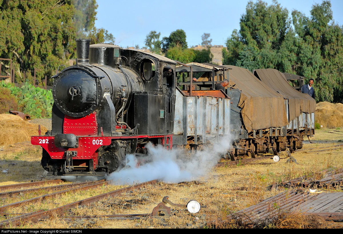 | The 0-4-0T 202 002 has been built in Italy by Breda in 1927. This lovely engine is seen here shunting a short freight train in the Asmara yard. |