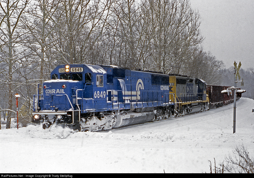 | An XWB hopper train plows thru the snow at the Darlington Road crossing. The train was going at a slow speed for the speed restricition on the curved bridge over the CSX tracks and Beaver River just ahead. |