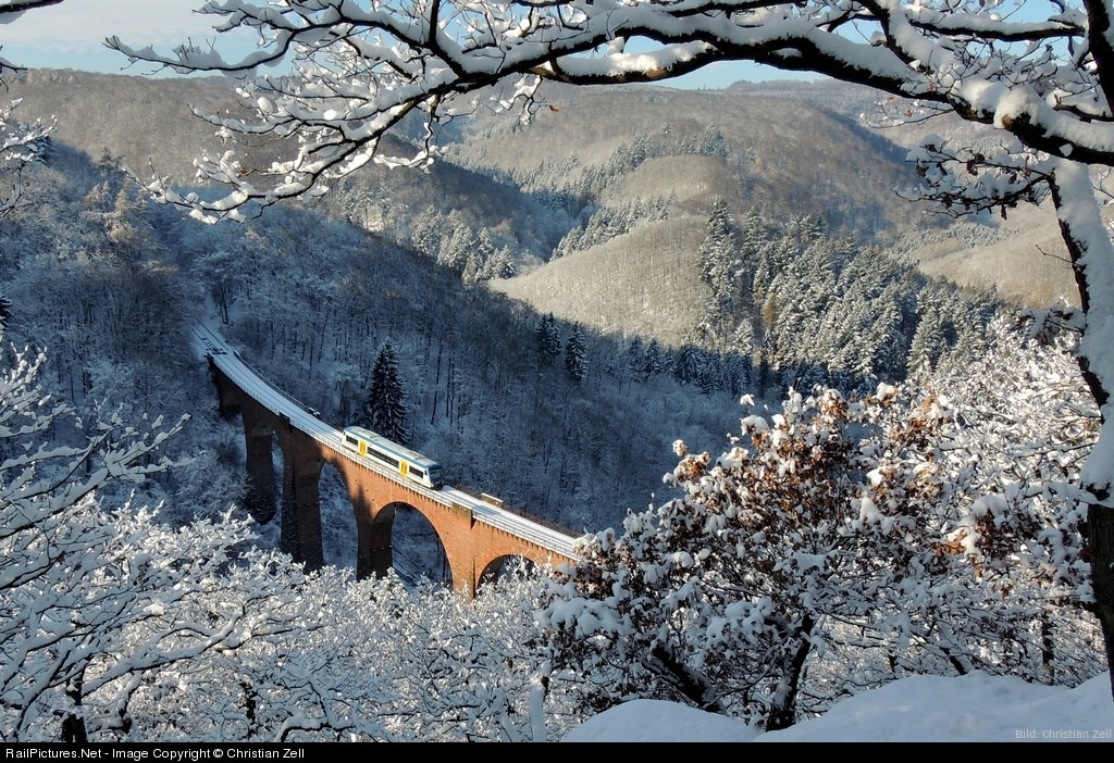 Rhenus Veniro 650 350 crosses the "Hubertusviadukt" (hubertus bridge) on the "Hunsrückbahn".