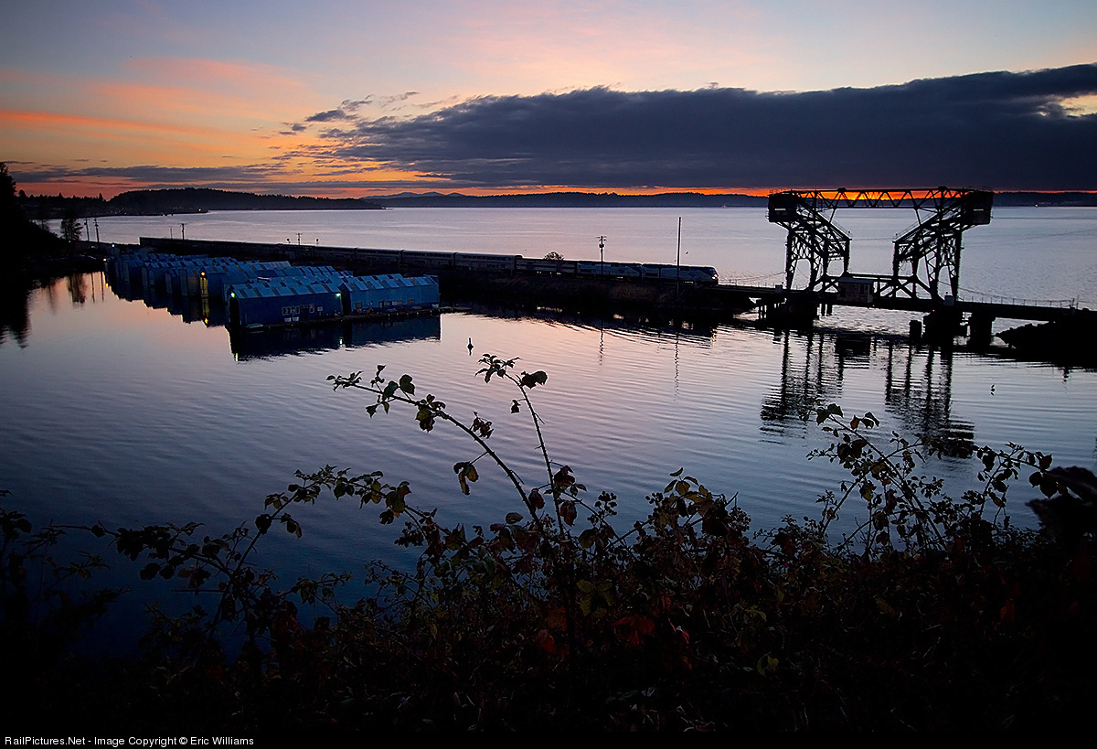 Amtrak's Coast Starlight approaches Drawbridge 14 at Chambers Bay on it's journey north to Seattle.