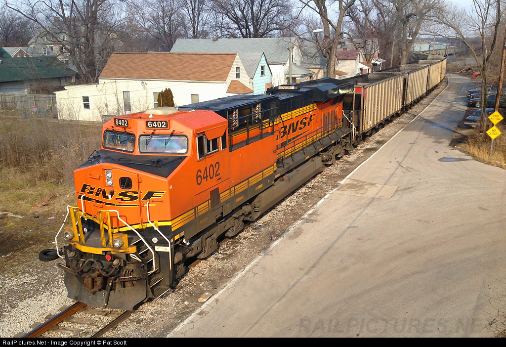 Now those are some front yards with a view! An empty BNSF train snakes its way down Antelope Street in north Saint Louis on its way to the Hannibal Sub. Those are the front porches of the houses seen to the left, and instead of grass, the front yards are ballast, ties, and rail. For rails that close to the front door, should you have a crossing bell in your living room to warn you before you leave the house?
