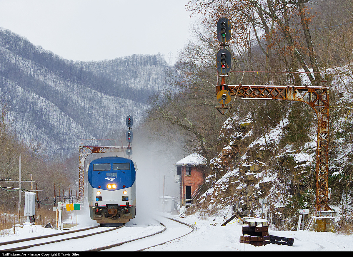 RailPictures.Net Photo: AMTK 119 Amtrak GE P42DC at Hinton, West Virginia by Travis Giles